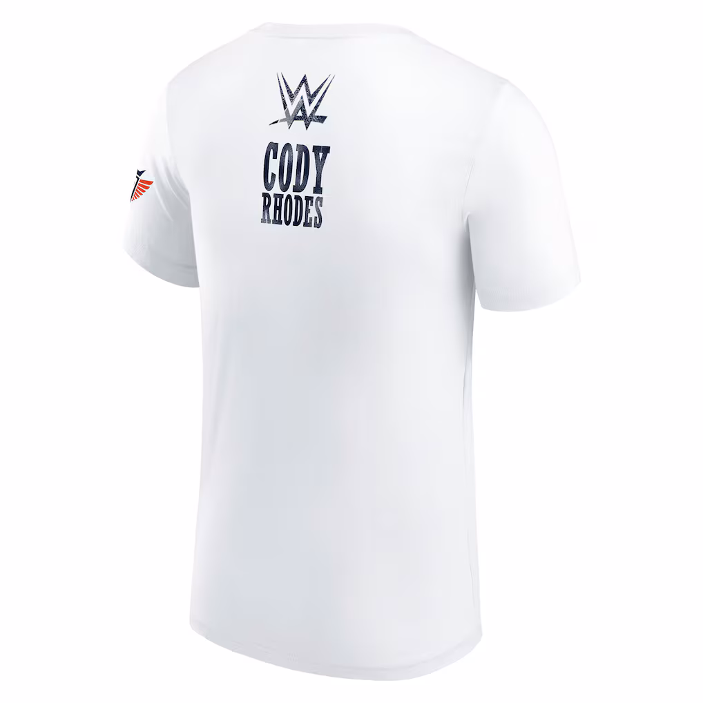 Design: Crisp white cotton tee featuring bold Cody Rhodes-inspired graphics that celebrate his iconic âAmerican Nightmareâ persona.