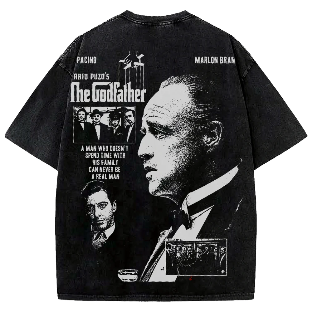 Design: Bold front graphic inspired by The Godfather, capturing its timeless aura.