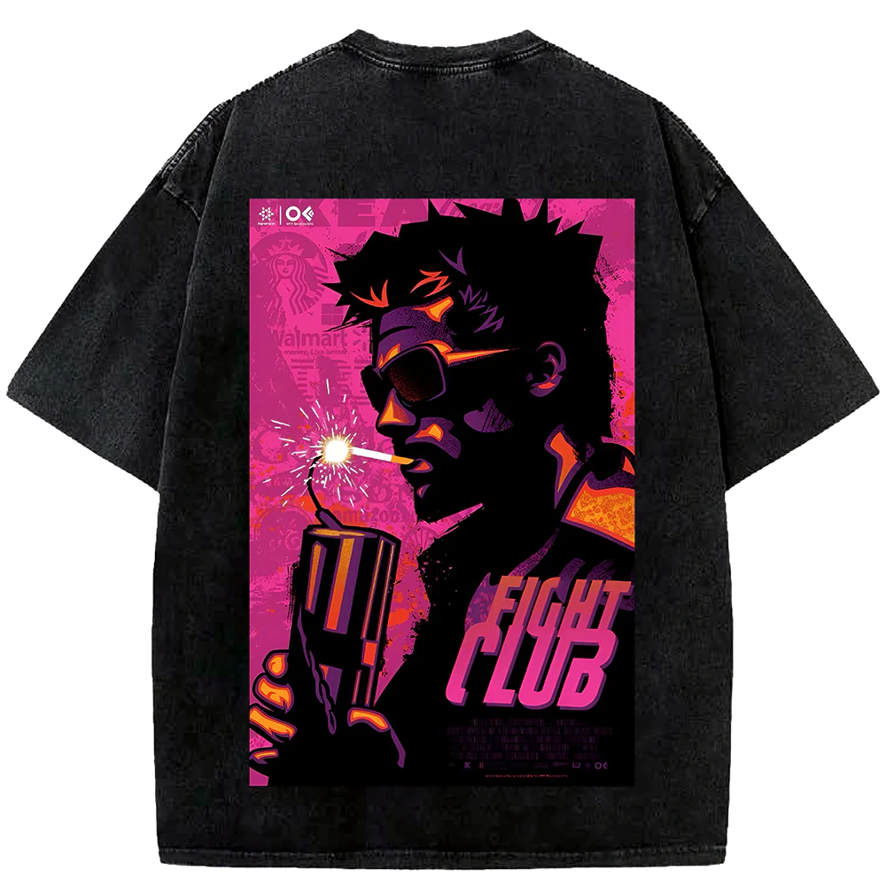 Design: Jet-black oversized tee featuring bold Fight Club-inspired artwork that embodies the raw, chaotic energy of the cult classic